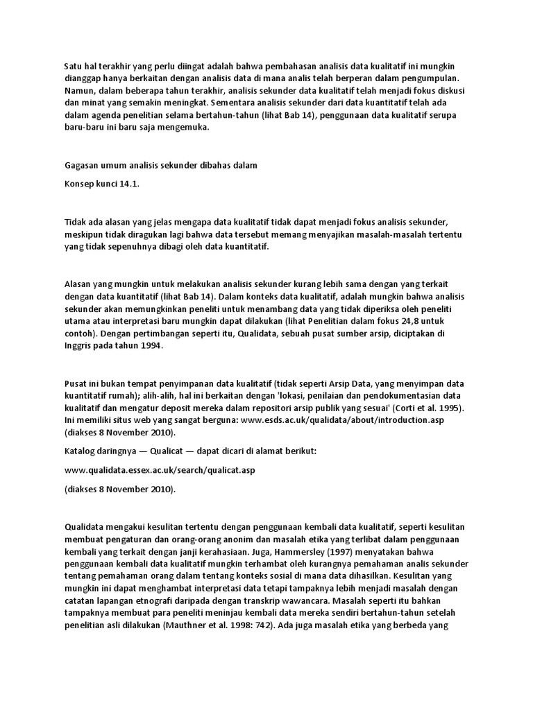 Contoh data kualitatif dan kuantitatif yang akan disampaikan di sini diambil dari beberapa sumber. Pengungkapan hal yang penting. Proses pengumpulan data kualitatif yang umumnya menitikberatkan pada wawancara dan observasi partisipasipatoris membuat analisis datanya berupa analisis tekstual dari hasil transkrip atau catatan lapangan yang tidak terstruktur.