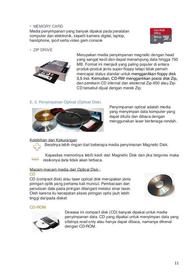 Walaupun demikian optical disk ini memiliki keunggulan dari segi mobilitas karena bentuknya kecil dan tipis. Penulisan data pada cd rom hanya dapat dilakukan sekali. Macam macam media penyimpanan a.
