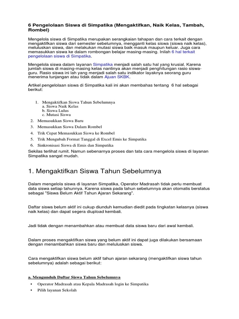 6 Pengelolaan Siswa Di Simpatika Mengaktifkan Naik Kelas Tambah Rombel