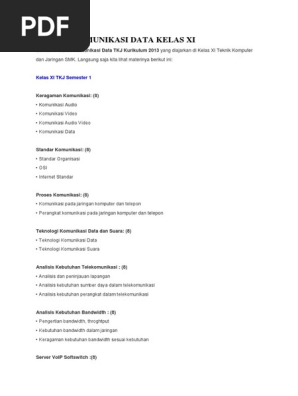 Materi komunikasi data kelas xi berikut ini materi teknologi layanan jaringan tkj kurikulum 2013 revisi 2017 yang diajarkan di kelas xi dan xii teknik komputer dan jaringan smk. Mapel komunikasi data ini termasuk dalam kelompok c3 kurikulum smk tahun 2013 dan diajarkan pada kelas xi semester 1 dan 2 langsung saja anda dapat mengunduhnya pada link berikut ini. Komunikasi data kelas xi tkj download disini.