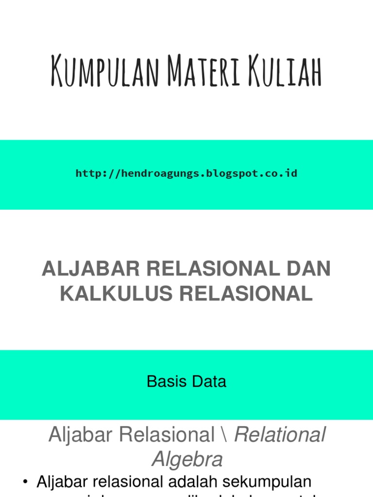 Bab 9 Aljabar Relasionalppt Aljabar Relasional