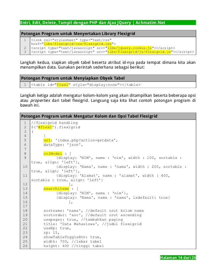 Entri Edit Delete Tampil Crud Dengan Php Dan Ajax Jquery