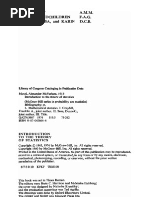 Mood Introduction To The Theory Of Statistics