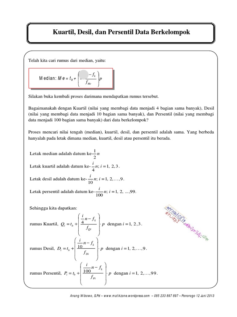 Rumus untuk mencari desil dari suatu data berkelompok yaitu. Membagi data di sebelah kanan median menjadi dua bagian sama dan menghasilkan kuartil atas atau q 3. Jenis kuartil ada 3 yaitu kuartil pertama q 1 kuartil kedua q 2 dan kuartil ketiga q 3.