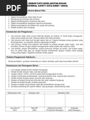 Berikut yang dapat admin bagikan terkait lembar data keselamatan bahan alkohol 70. Admin blog Berbagi Data Penting 2019 juga mengumpulkan gambar-gambar lainnya terkait lembar data keselamatan bahan alkohol 70 dibawah ini.