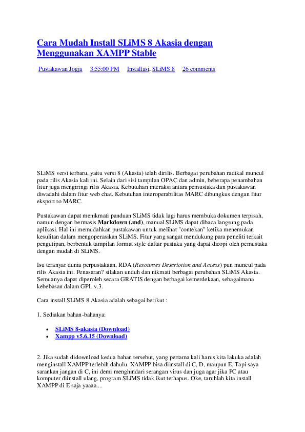 Doc Cara Mudah Install Slims 8 Akasia Dengan Menggunakan