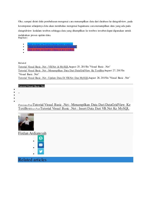 Cara Menampilkan Data Dari Datagrid Kedalam Textbox Dengan Vbnet