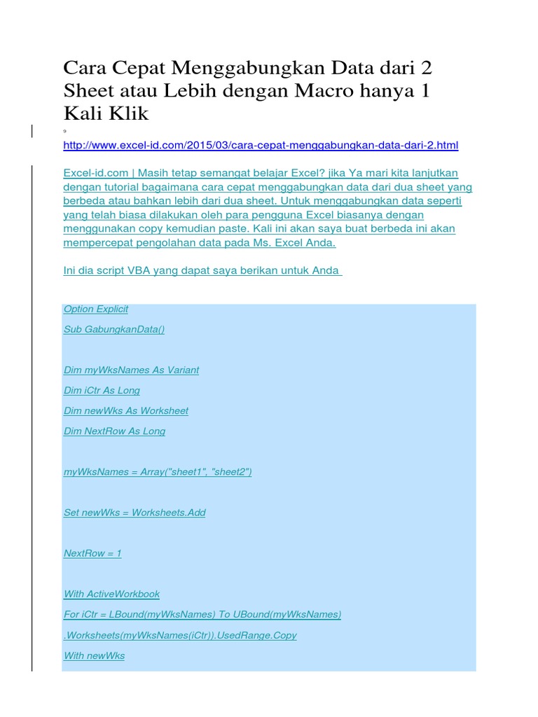 Macro Vba Excel Cara Menggabungkan Beberapa Sheet Menjadi