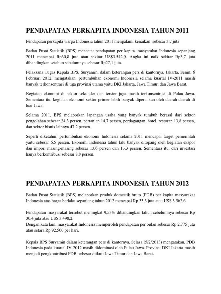 Pendapatan Perkapita Indonesia Tahun 2011docx