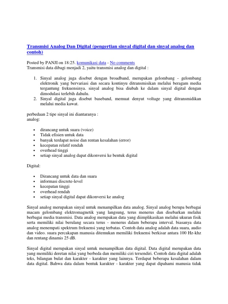 Data Sinyal Analog Dan Digital Materi Komunikasi Data