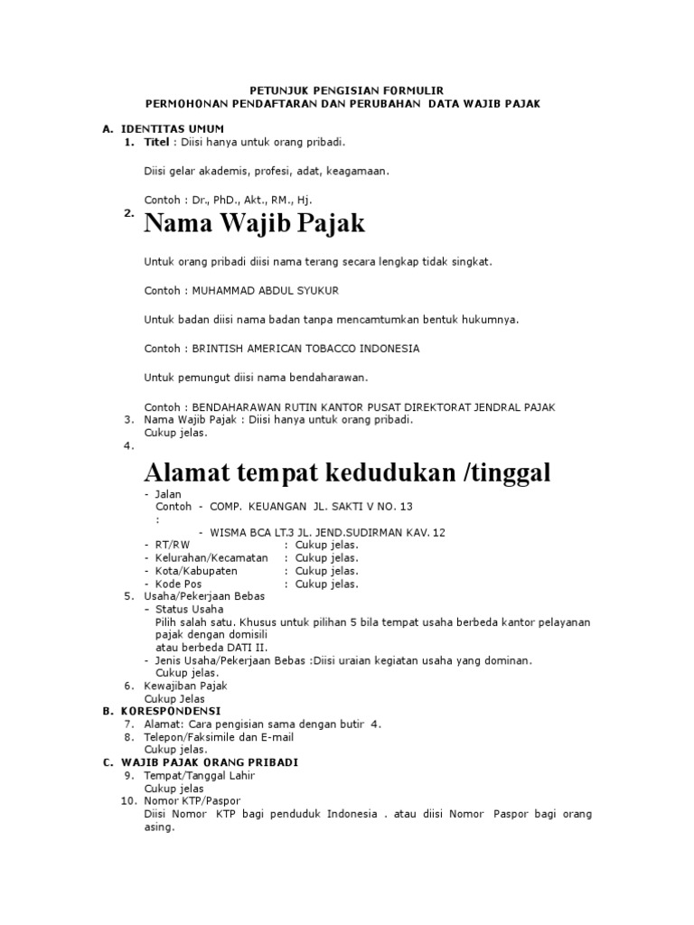 Download Formulir Perubahan Data Npwp Wajib Pajak Format