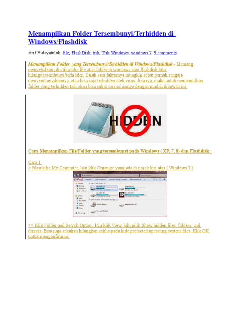 Tutorial Mengembalikan File Yang Terhidden Di Flashdisk