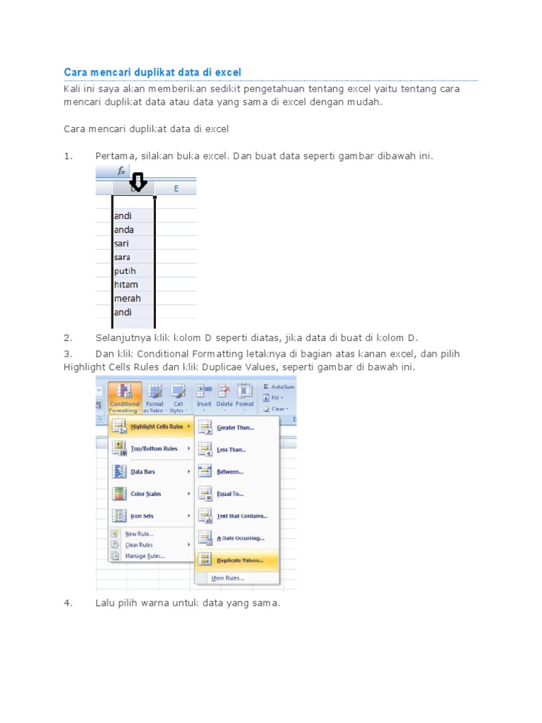 Cara Mencari Data Yang Sama Atau Duplicate Dengan Fungsi