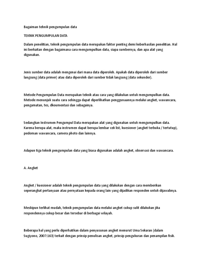 Untuk memperdalam pemahaman kita tentang macam macam. Pengumpulan data dengan observasi 1 macam macam observasi nasution dalam sugiyono 2006 menyatakan bahwa observasi adalah dasar semua ilmu pengetahuan. Angket merupakan teknik pengumpulan data yang efisien jika peneliti mengetahui dengan pasti variabel yang akan diukur dan tahu yang tidak bisa.