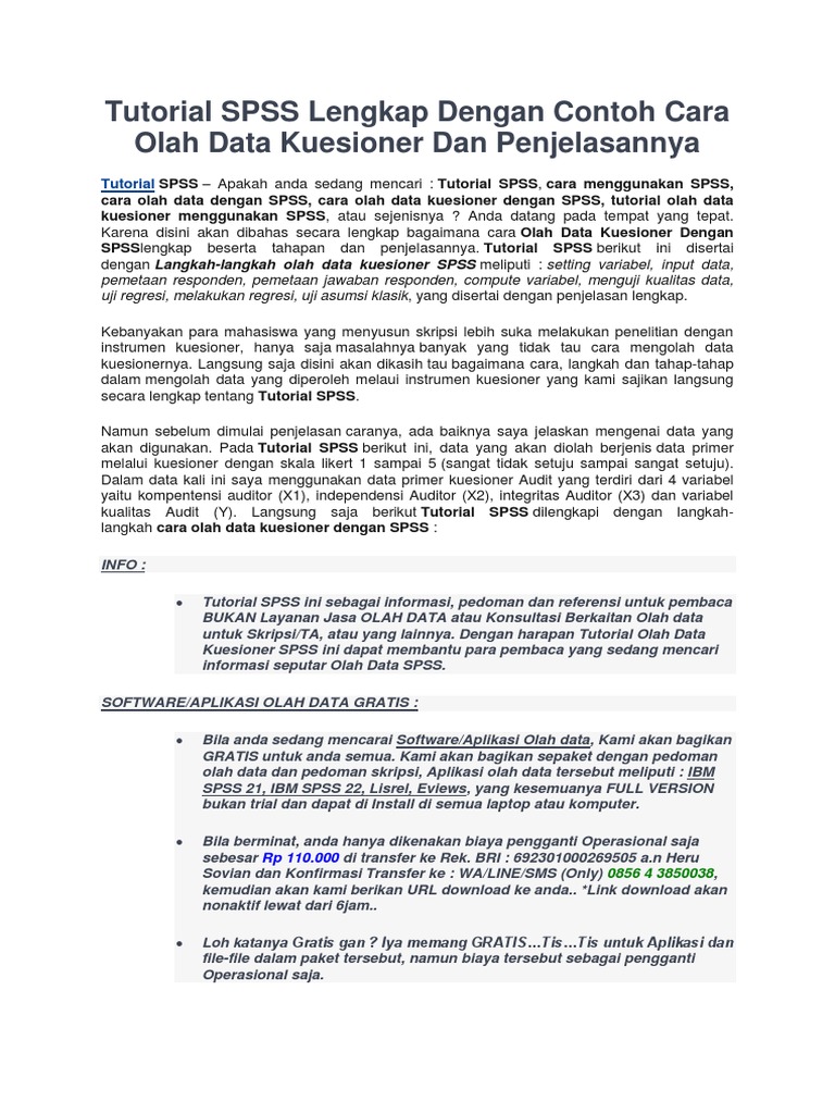 Cara memasukkan data responden ke spss. Cara memasukkan data di spss. Cara input data kuesioner atau angket ke dalam spss. Spss adalah sebuah program analisa statistik yang digunakan dalam berbagai bidang dari riset pasar hingga badan pemerintahan.