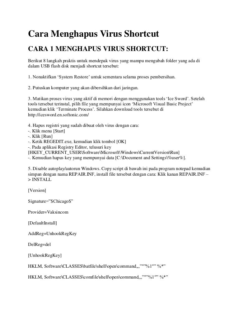 Cara Menghilangkan Virus Shortcut Dari Usb Flashdisk
