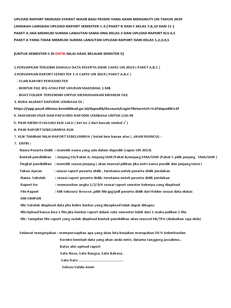 Wajib Upload Raport Capes Un 2019