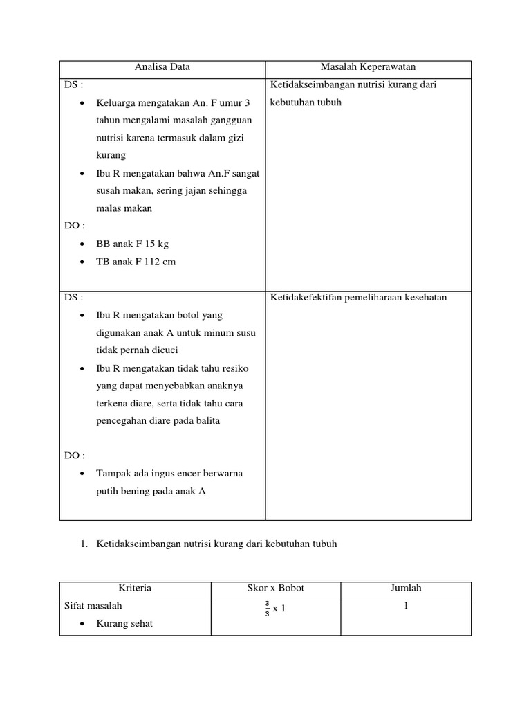 Berikut yang dapat admin bagikan terkait analisa data ketidakseimbangan nutrisi kurang dari kebutuhan tubuh. Admin blog Berbagi Data Penting 2019 juga mengumpulkan gambar-gambar lainnya terkait analisa data ketidakseimbangan nutrisi kurang dari kebutuhan tubuh dibawah ini.