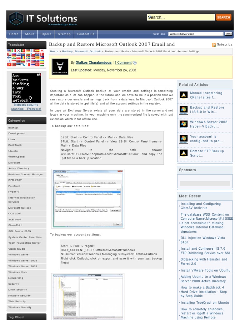 Backup And Restore Microsoft Outlook 2007 Email And Account