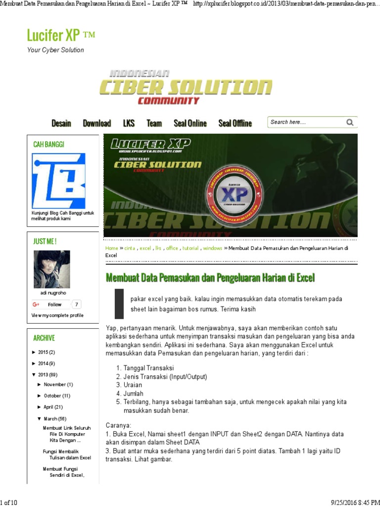 Membuat Data Pemasukan Dan Pengeluaran Harian Di Excel