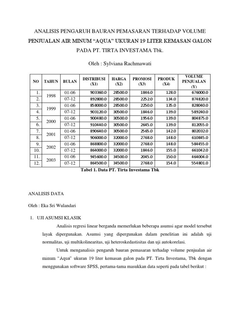 Admin mengumpulkan dari berbagi sumber terkait Data Penjualan Air Minum Dalam Kemasan.