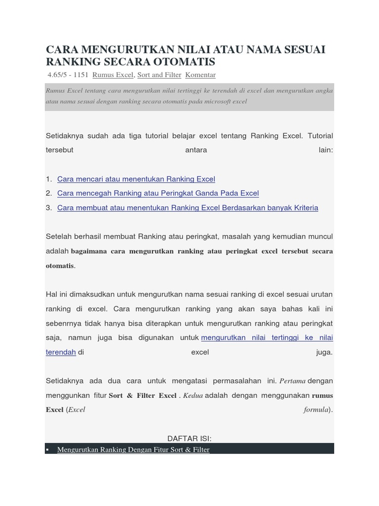 Cara Mengurutkan Dan Merangking Data Dengan Mudah Di