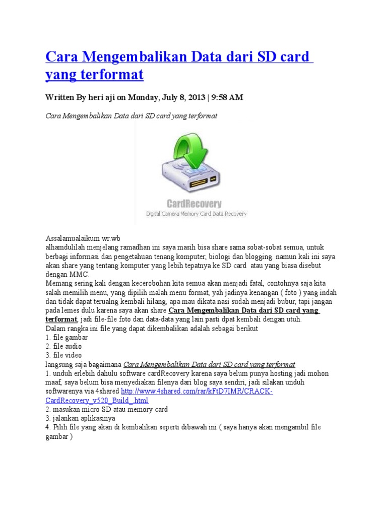 Ulasan tentang Mengembalikan Data Sd Card Yg Terformat.