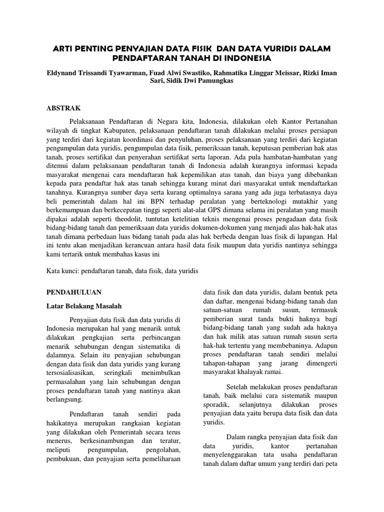 Arti Penting Penyajian Data Fisik Dan Data Yuridis Dalam