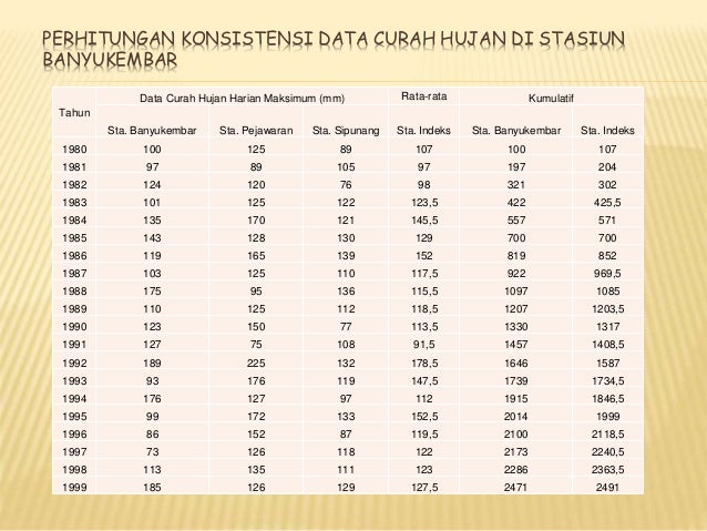 Inilah yang dapat admin infokan terkait cara uji konsistensi data curah hujan. Admin Berbagi Data Penting 2019 juga mengumpulkan gambar-gambar lainnya terkait cara uji konsistensi data curah hujan dibawah ini.